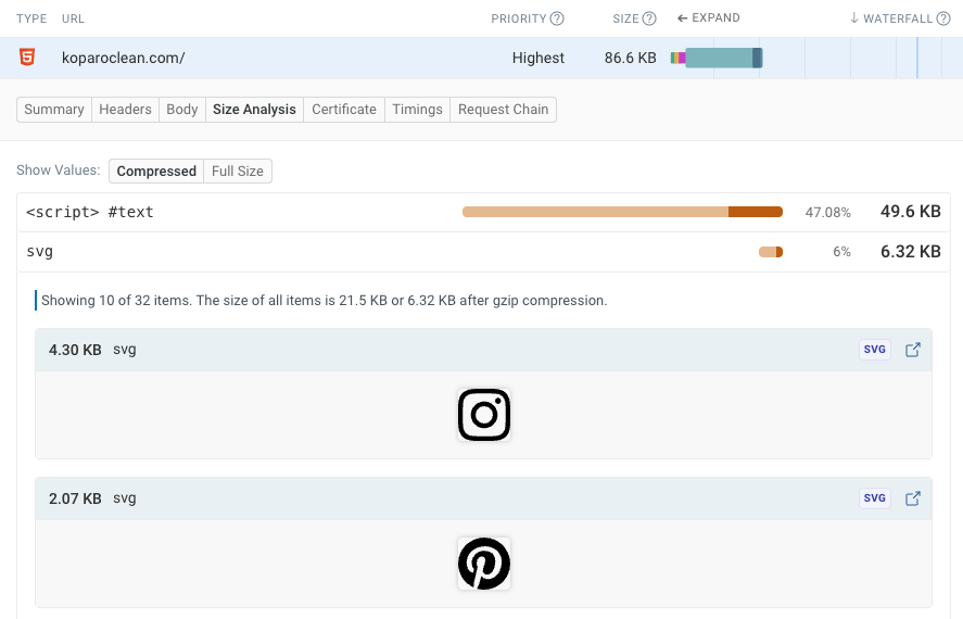 Our HTML Size Analyzer has a new design and improved functionality. You can find it built into our product by expanding the HTML request and switching to the "Size Analysis" tab.